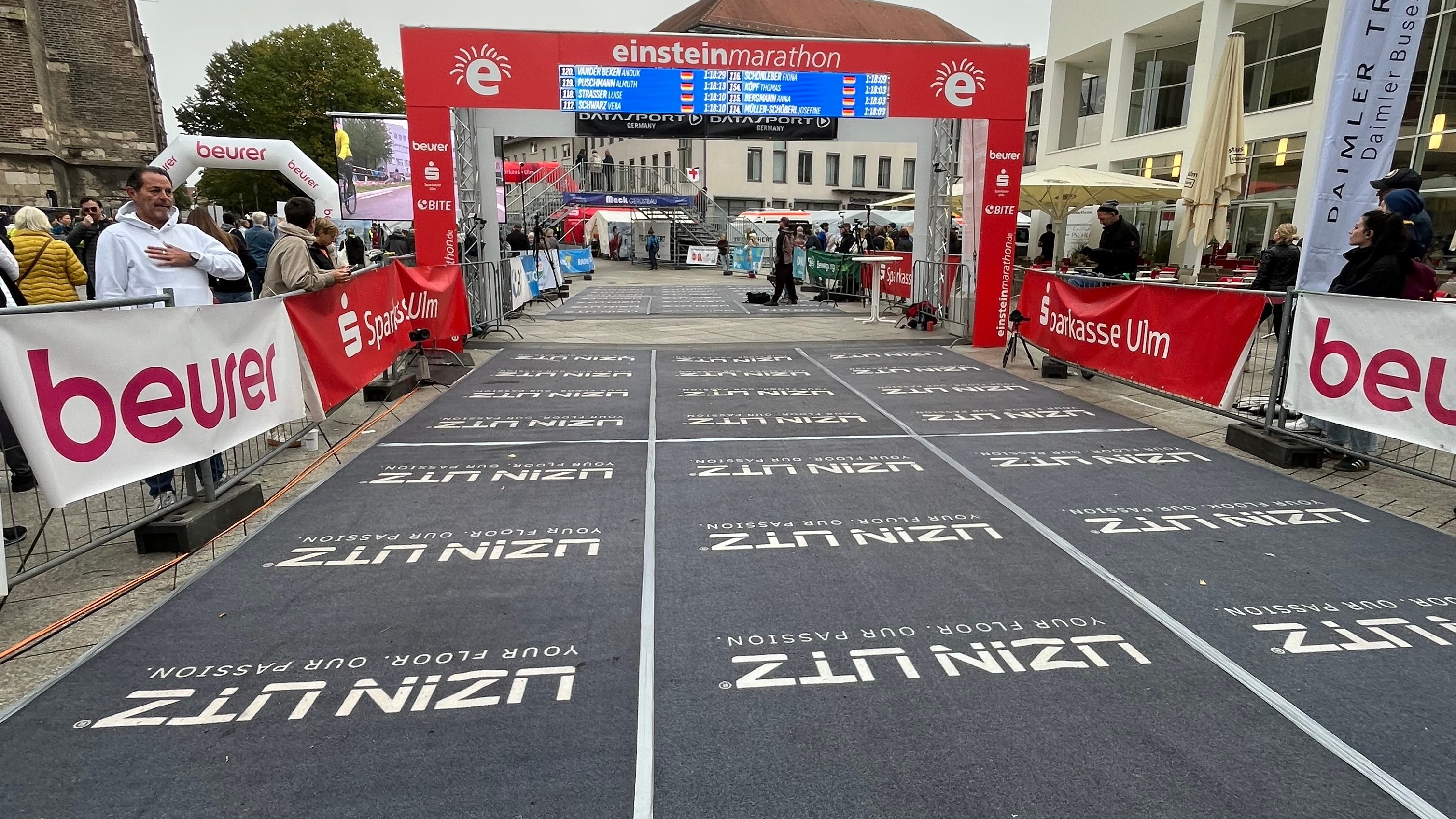 Seit Anfang 2022 unterstützt UZIN UTZ die Ulmer Einstein-Läufe als Sponsoring-Partner. Die Lauf-Veranstaltungen in Ulm sind mittlerweile zu einem wichtigen Bestandteil unseres regionalen Engagements geworden. Durch die UZIN UTZ Teppichmatten im Start- und Zielbereich der Läufe und einem Promotion-Stand bei den Veranstaltungen vor Ort, ist UZIN UTZ als Partner nicht zu übersehen. Beim zwölften Ulmer Frauenlauf im Juli 2025 gingen ca. 50 laufbegeisterte Kolleginnen an den Start, danach wurde auf dem Münsterplatz gefeiert. Auch am 28. September 2025 beim Einstein-Marathon gingen ca. 65 Läufer (inkl. Zusatzpersonen) in den verschiedenen Laufdisziplinen an den Start. Im Zielbereich wartete eine leckere Verpflegung auf das UZIN UTZ Laufteam.